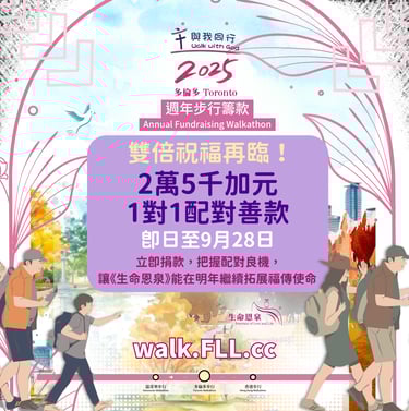 早前捐贈配對捐款的善長,被大家對支持福傳的熱心感動 💌,決定再捐出 $25,000 加元 作為配對捐款 💰,鼓勵各位繼續慷慨解囊 🙌,協助我們盡快達到今年 $750,000 加元 的籌款目標!🎯